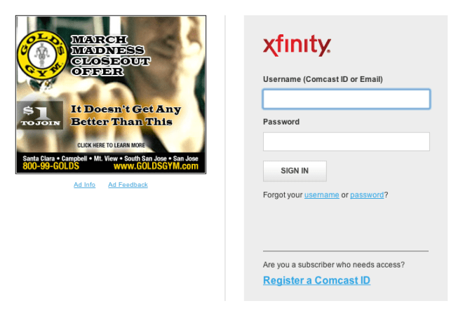 April 3, 2011June 6, 2016 maxbeatty How cheap is Comcast that they have to run ads on a login page for paying customers? Share this: Email a link to a friend (Opens in new window) Email Share on Facebook (Opens in new window) Facebook Share on X (Opens in new window) X Like Loading... Image