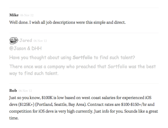Signal vs. Noise – When a comment is marked as trolling, the comment appears in Comic Sans, lighter color and has a troll face next to the comment author.
